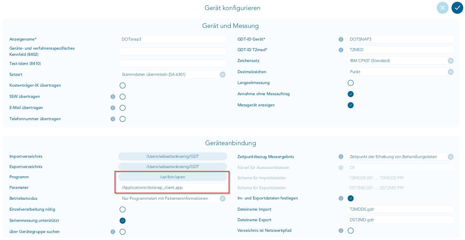 Besonders bei dieser Anbindungsart empfehlen wir dringend, die Übertragung gründlich zu testen. Denn falls das Gerät falsch oder unzureichend konfiguriert ist, könnten Fehler während des Importvorgangs auftreten und die Daten somit nicht / nicht vollständig importiert werden!